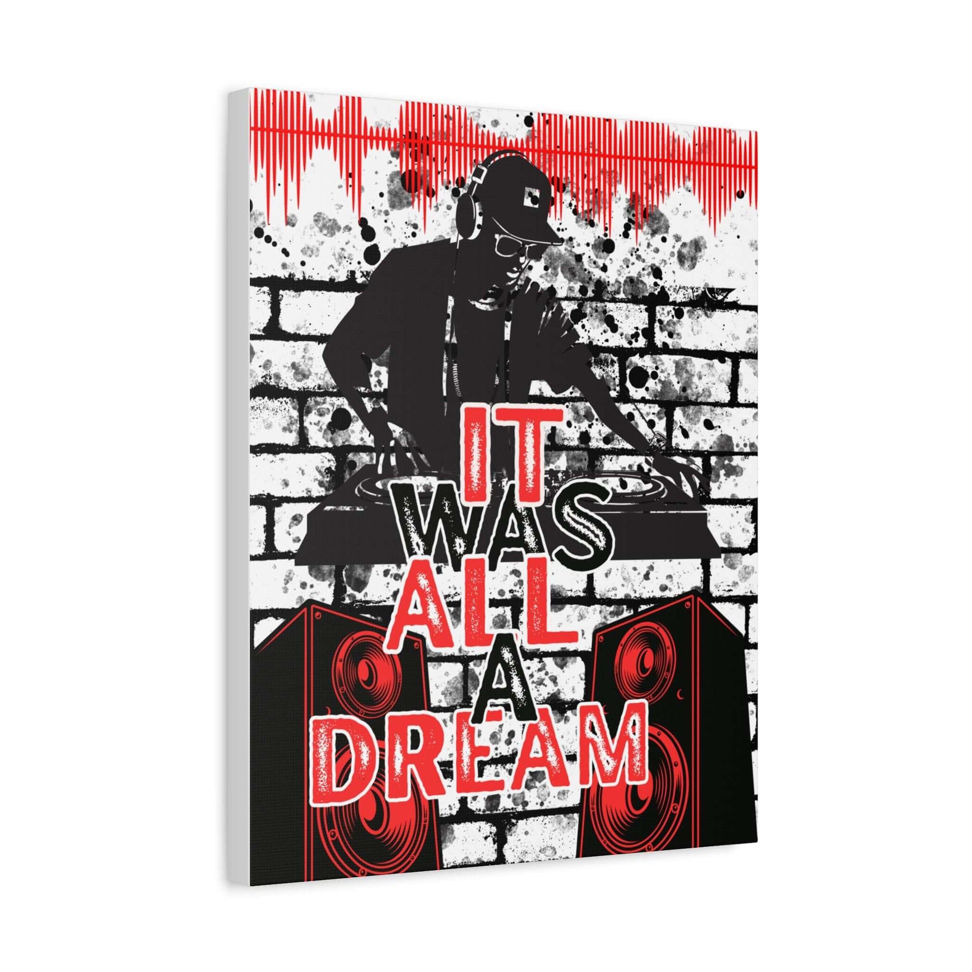 DJ Turntable Wall Art Canvas — "It Was All A" Urban Music Graffiti Print